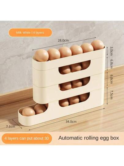 2/3/4 Layers Portable Automatic Rolling Egg Holder Rack Large Capacity Fridge Egg Storage Box Kitchen Refrigerator Egg Dispenser - 米色 - 查看 2