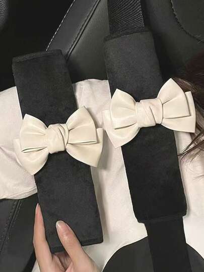 2 件装汽车安全带套,带蝴蝶结装饰、肩垫安全带保护器 - 黑與白 - 查看 6