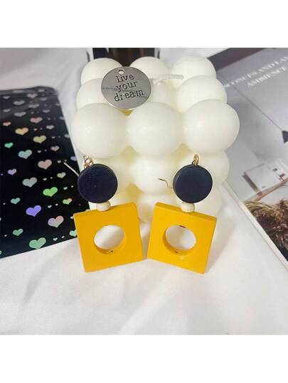 1 件波西米亚复古几何木耳环,适合女士日常佩戴、圣诞节、万圣节、复活节、婚礼、派对、酒吧、节日 - 黃色 - 查看 1