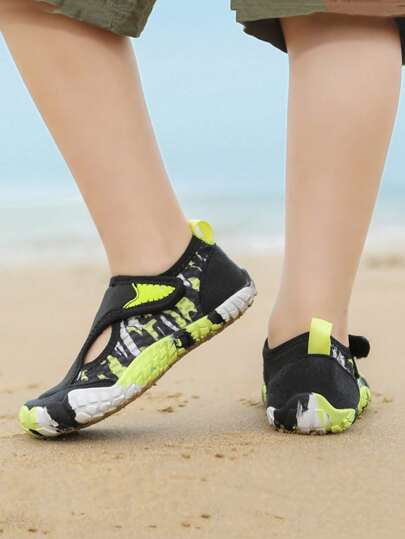 儿童钩环沙滩鞋,儿童水鞋,速干防沙水鞋,适合海滩、溪流、跳绳、攀岩等户外活动,带防滑鞋底 - 黑色 - 查看 1