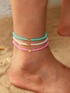 5入/組海灘風格童裝米粒子&彩色花卉串珠腳鍊