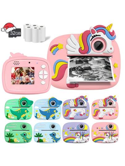 儿童相机即时打印套装,儿童摄像机即时打印相机,儿童即时相机,相机套装,适合3-12岁男孩女孩的圣诞节、生日和新年礼物,相机玩具 - AX3290大小眼 - 查看 1