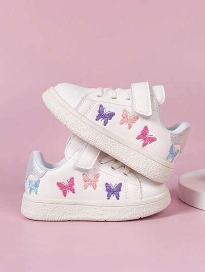 孩子們休閒白色運動鞋帶刺繡蝴蝶設計