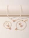 5入組粉白色蝴蝶和心形吊墜手鍊套裝,適用於女孩