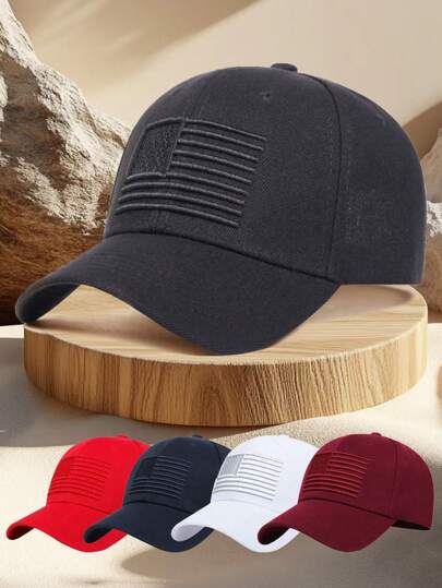 1 件男士可调节棒球帽,带美国国旗刺绣,适合春秋季休闲户外帽子 - 彩色 - 查看 1