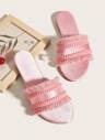 紫色石纹 PU 皮革女士平底凉鞋,毛球流苏装饰,波西米亚风格,度假风格