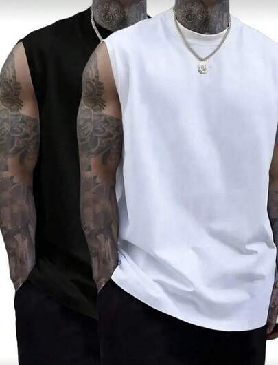 Kit 2 Plain Tank Tops Summer Beach Fashion Cotton Macho Shirt