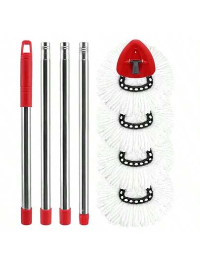 Color 4 White Mop Heads + Mop Handle + Triangular Base