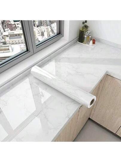 厨房台面大理石防油污贴纸灶台耐高温墙贴自粘翻新防潮自粘膜 - 白色 - 查看 1