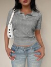 Pariaura 撞色条纹 Polo 领针织上衣,法式街头风格,短袖夏季衬衫