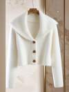 lacRébo 复古奶油色纹理针织开衫,圆领,扇形下摆