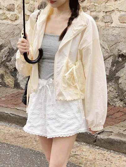韩版时尚轻薄开衫,休闲纯色外套,秋季时尚 - 杏色 - 查看 1