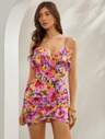 L'Amorae 女士花卉碎花印花梭织三层长裙