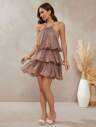 L'Amorae 优雅浪漫婚礼宾客纯色露背分层雪纺长裙