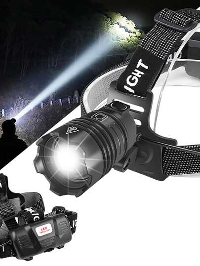 jihuo Led可重複使用頭燈,頭燈xhp70超亮90000高流明,4種模式,連電池,可縮放,防水頭燈,適用於露營,狩獵,跑步,釣魚,騎自行車 - 黑色 - 查看 6