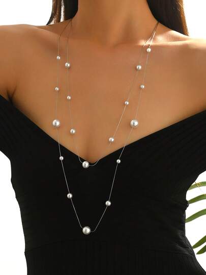LIEBEIRIS 18k镀金双层珍珠长项链,女士不锈钢项链,适合日常佩戴和送礼