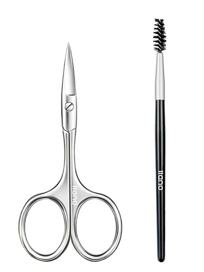 Llano 2 件套眉毛剪刀套装,专业不锈钢面部毛发小型美容银剪刀和睫毛刷,适用于男士、女士、眉毛、鼻毛、胡须、胡须、睫毛、耳部修剪套装、化妆、便宜、房间装饰、梳妆台、旅行、卧室、化妆配件 - 查看 2