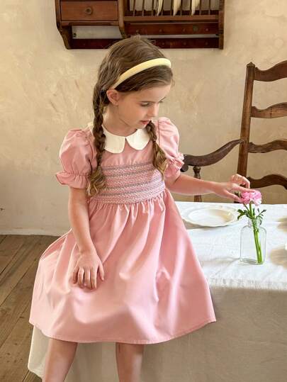 LMoss Kids LMoss 年轻女孩褶饰领口贴身休闲连衣裙 - 粉色 - 查看 10