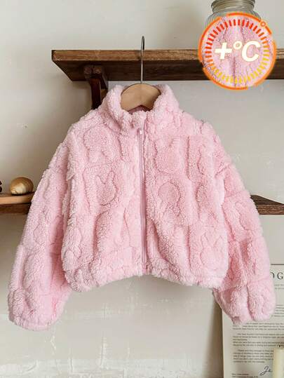 LMoss Kids LMoss 年轻女孩双面兔子印花羊毛夹克,适合秋季休闲保暖穿着 - 粉色 - 查看 1