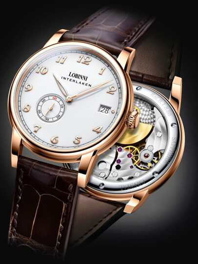 LOBINNI 男士圓形指針防水機械手表 - 玫瑰金 - 查看 3
