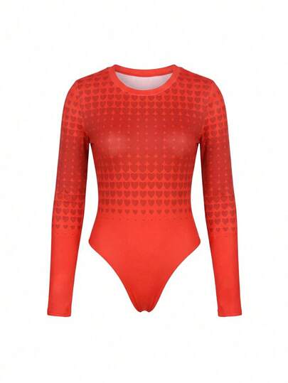 LOTSLUV 女士红色渐变爱心印花圆领长袖连体衣 - 紅色 - 查看 1