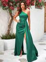 LOVE&LEMONADE 白色露肩合身腰部不对称长款正式晚礼服、派对礼服、婚礼宾客礼服、长袍