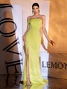 LOVE&LEMONADE 白色露肩合身腰部不对称长款正式晚礼服、派对礼服、婚礼宾客礼服、长袍