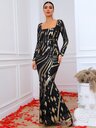LOVE&LEMONADE 亮片拼接單肩網紗覆蓋下擺正式連衣裙