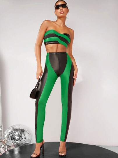 Hauture 拼色 PU 皮革上衣和裤子两件套 - 彩色 - 查看 1