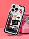 TPU 旅行元素防震 1 件装 时尚旅行折扣机票磁条印花透明手机壳 字母标语图案手机壳 复古拼接图案日常旅行手机壳 全包保护防震软 TPU 透明手机壳 手机保护套 春季生日礼物