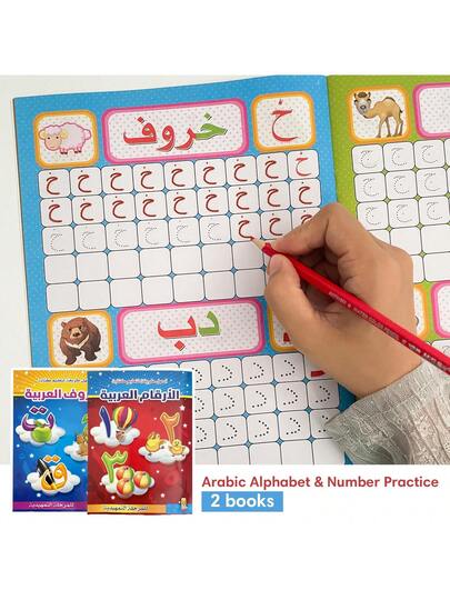 Lachilly 阿拉伯字母与数字描摹练习册、ABC字母书写练习册、123个数学阿拉伯语学习册(儿童适用)、幼儿园教师教学辅助工具、语言学习教室用品、家庭学校课堂资源、益智玩具 - 彩色 - 查看 10