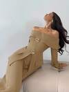 Selianne 优雅女士套装,含长袖收腰夹克和阔腿褶皱裤