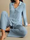 Anewsta 休闲女式长袖纯色衬衫和裤子,舒适居家服套装,适合假日、冬季穿着