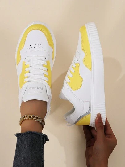 女士們競技鞋,低幫休閒鞋,繫帶黃色的滑板運動鞋