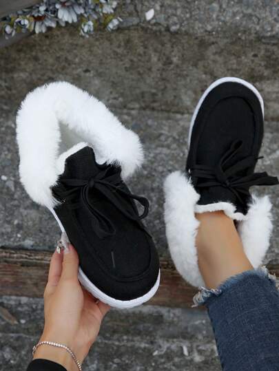 女式休闲运动鞋,带保暖内衬、流苏和系带 - 黑色 - 查看 1