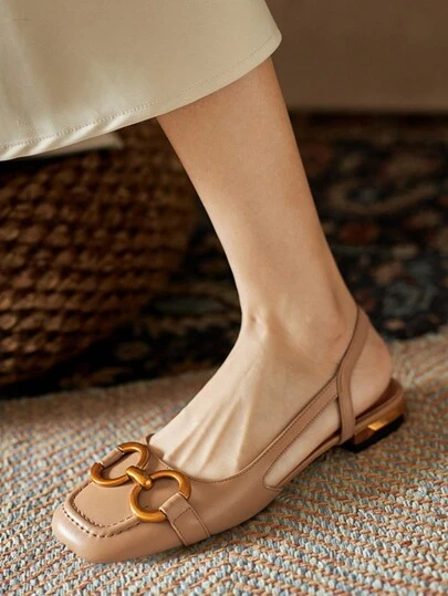 2025秋季新款女士平底凉鞋女夏季包头粗跟马衔扣低跟鞋后绑带平底鞋 - 棕色 - 查看 2