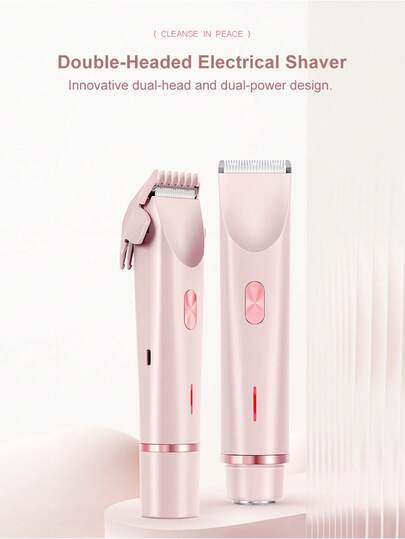 女士二合一双头比基尼修剪器 - 电动剃须刀,干湿两用,脱毛器,适用于比基尼、腋窝、腿部、手臂、面部,电池续航时间长,USB充电,面部脱毛。人体工学手柄(粉色) - 彩色 - 查看 1