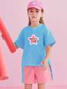 小女童後鎖孔植物圖案泡泡袖連衣裙