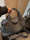 新款复古PU皮女士手提包,时尚拉链单肩包,配可拆卸肩带,女士工作旅行二合一包,灰色、黑色、绿色