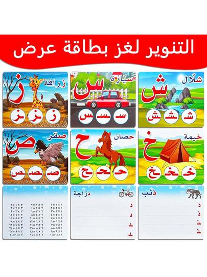 6. 这款大号阿拉伯语字母教育礼盒套装色彩鲜艳,帮助孩子学习阿拉伯字母和单词拼写。每张卡片包含单词的首字母、中间字母和尾字母,有助于快速识别单词和记忆,促进语言发展。是完美的圣诞节和新年礼物。
