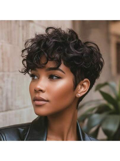 Layered Short Loose Wave Pixie Cut Human Hair Wig For Women Natural Black Colored Human Hair Wig With Bangs Remy Peruvian Human Hair Wig Rose Net Full Machine Made Holiday Wear Party Wear Music Festival Mother's Day Carnival Valentine's Day Halloween All Saints' Day Christmas Day Cosplay Spring Summer Autumn Winter Local Warehouse Wear And GO New Product Discounts Wigs For Black Women