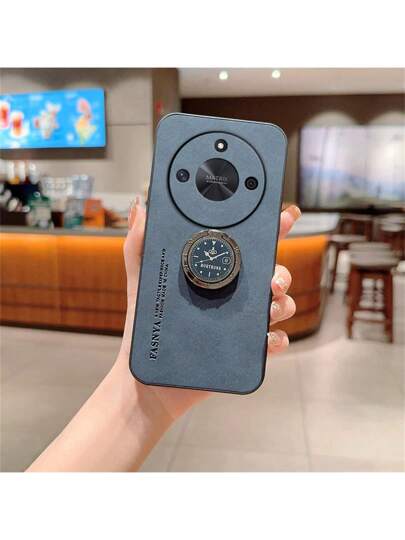 仿羊皮紋理布料男士抗摔軟殼手機保護殼,可相容於華為/榮耀,高級復古經典款手機保護套 - 藍色+支架 - 查看 1