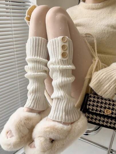 女士暖腿套、針織羊毛靴套 - 白色 - 查看 1