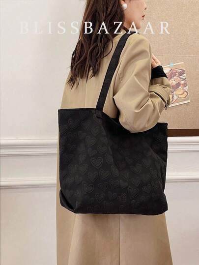 休閒時尚心型大容量單肩手提包情人節約會黑色 - 黑色 - 查看 1