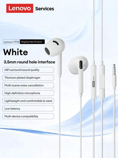 联想YF02有线耳机,简约入耳式设计,配备Type-C或3.5mm接口,高保真环绕立体声,降噪功能,高清通话,低延迟,适用于音乐、游戏、电影、学习和办公,兼容智能手机和电脑。