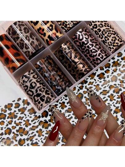 Leopard & Cheetah Print Nail Foils - Transfer Art Foil Stickers - Winter Nail Decorations - Laser Starry Sky Paper Manicure Accessories For Women - 1 Box{Inchcolorinch:InchLeopard Print 01inch}