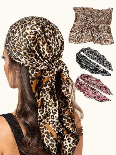 豹纹街头风多功能缎面大号发箍装饰(可作围巾、腰带使用),发饰,头巾式发箍,女士发带 - 彩色 - 查看 1