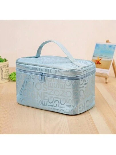 字母細節化妝品收納盒,多功能旅行化妝袋化妝箱帶手柄 - 藍色 - 查看 1