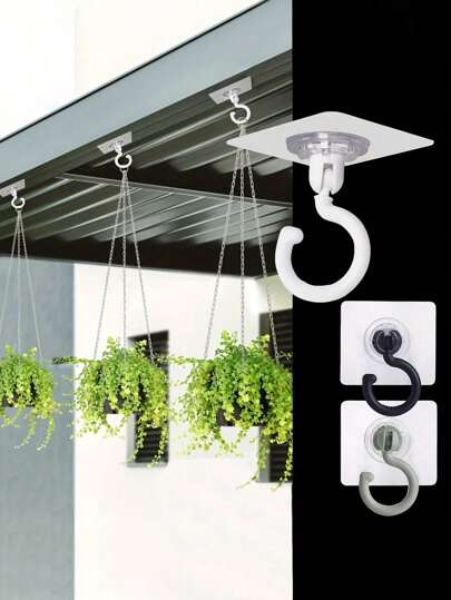 4 个可旋转天花板粘性挂钩、可旋转自粘式天花板挂钩、天花板旋转无缝挂钩 - 易于安装,无需钻孔、用于悬挂植物、灯笼、风铃的粘性衣架、带实用挂钩的现代天花板装饰、浴室配件、家居配件 - 彩色 - 查看 10