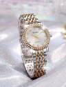 国庆节女士手表 4 件水晶项链水晶耳钉手链和 1 件女士金色水钻装饰锌合金表带迷人圆形表盘石英表适合日常佩戴、感恩节、万圣节、圣诞节、生日派对、斋月,也是完美的礼物,无盒